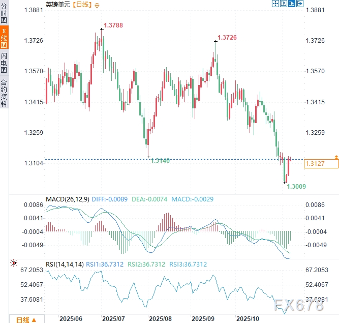 (英镑兑美元日线图,来源:易汇通)北京时间9:16,英镑兑美元交投于1.3127/28。