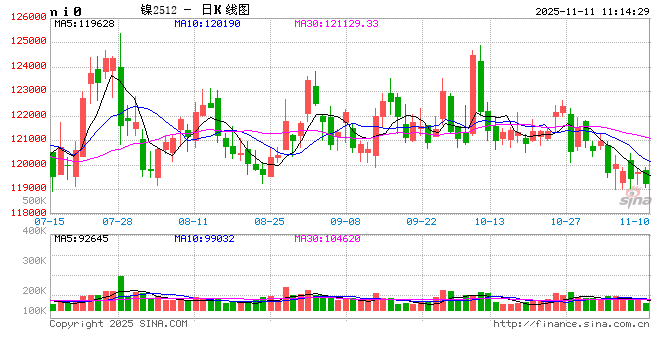 长江镍业网讯:今日沪镍期货全线高开;主力月2512合约开盘报119780涨290,9:10分沪镍主力2512合约报119540涨50;沪期镍开盘后窄幅震荡,尾盘小幅收涨;宏观面,美国史上最长政府停摆即将落幕,但市场迎来的并非坦途。美联储降息路径陷入“内战”,政策分裂之下,美股科技股却率先狂欢。全球宏观正步入一个确定性消退的博弈新阶段,美元指数弱势震荡,市场风险偏好回暖,有色金属行情普遍上涨,本交易日镍价区间震荡修复。