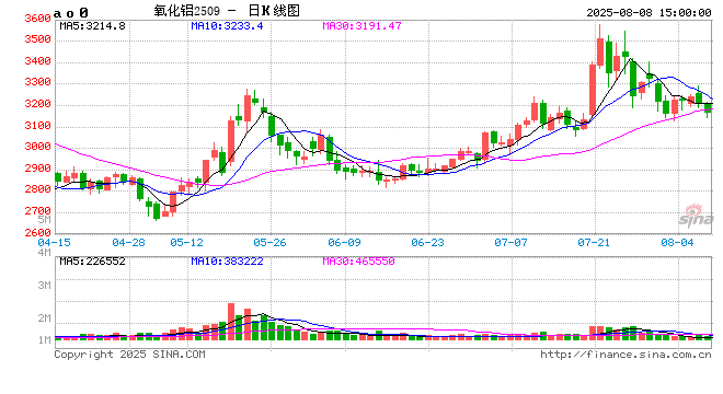 自5月份氧化铝理论利润转正后,一直持续至今。利润的维持使得复产规模得以持续;新投产产能继续释放,魏桥第四条线、广西广投的两条线三季度投产,印尼南山100万吨生产线处于试生产阶段,另一条100万吨产线计划年底投产,东方希望200万吨项目计划于2026年1月建成投产,新疆众和240万吨项目预计将于2026年上半年建成投产。新投产项目未受到影响,仍在按部就班的推进。SMM数据显示,氧化铝周度运行产能增至9109万吨,相比5月份时增加了700万吨,随着投复产的增加,运行产能仍会增加。6月份供需再次转为过剩,下半年预计会持续处于过剩局面,库存累积速度或增加。相关机构库存数据显示,截至本周四(8月7日)库存增加4.2万吨,总计为328.5万吨,其中分项数据中,氧化铝厂库存继续增加,且长单执行效率提高使得电解铝厂库存也持续累积。