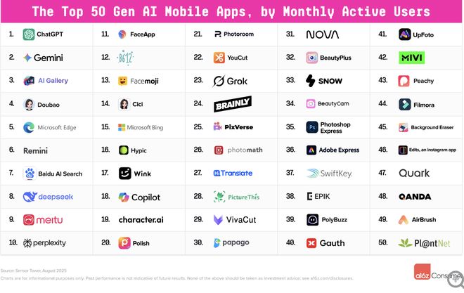 全球AI消费级应用格局正趋向稳定,头部竞争却愈发激烈。