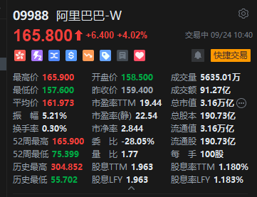 正文 阿里巴巴港股短线拉升,现涨超4%,吴泳铭称资本开支会在3800亿基础上增加更多投入 安信科技 V管理员 /09-24/46阅读/0评论 0924 文章最后更新时间2025年09月24日,若文章内容或图片失效,请留言反馈! 阿里巴巴港股短线拉升,现涨超4%,报价165.8港元,美股夜盘涨近3%。 阿里巴巴集团董事兼CEO吴泳铭发表主旨演讲。他表示,AGI是具备人类公共认知能力的智能系统,现在在行业看来已经成为现实的世界。但吴泳铭指出,AGI并非是发展的终点,只是全新的起点,AI肯定不会止步于AGI, 它将迈向超越人类智能能够自我迭代进化的超级人工智能行业,称为ASI超级人工智能。吴泳铭称,资本开支会在3800亿基础上,增加更多的投入。